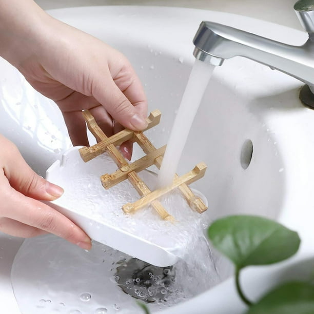 【Bamboo inner bracket and bamboo fiber outer tray design】The bamboo bracket built into this soap box allows water to drain to the bottom, ensuring that the soap does not become wet and mushy.