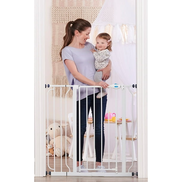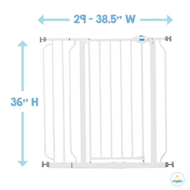 Your baby took their first steps, now they are off and exploring their new world. It’s time to childproof your home. A baby gate is an essential tool for protecting your child, especially if they like to climb. The Regalo Extra Tall Assembly Baby Gate provides the security you can rely on for those moments when you can’t be in arms reach of your little one. The all-steel construction of the baby gate provides parents with peace of mind that it will hold up to the everyday use of your curious toddler. The adjustable nature of the gate provides convenience accommodating door openings between 29-38.5″. We know gate installation is important. It needs to be safe, yet quick. To make installation hassle-free, pressure mounts the gate with the included rubberized tension knobs or use the included hardware to attach the gate to your wall.