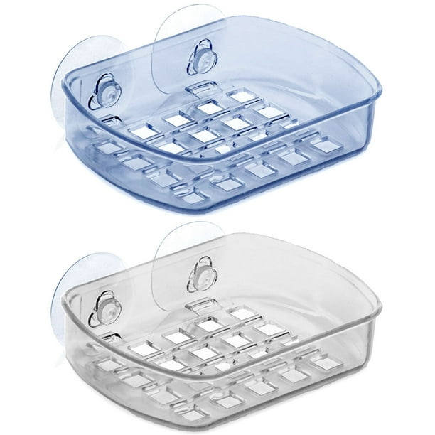 2 Pc Suction Cup Soap Dish Draining Holder Bar Saver Tray Bathroom Shower Rack