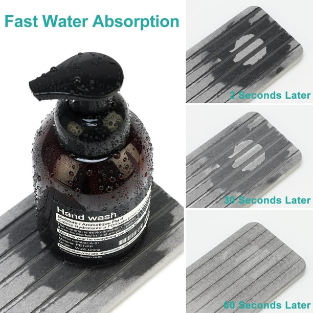 • MULTI-PURPOSE: You can use these quick absorbent dish on kitchen countertop or bathroom sink to help catch the drips from turning water off with wet hands and soaps. The stone drying mat is also a great accessory for your kitchen or bathroom counter.