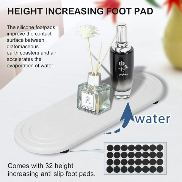 Quick Water Absorption and Fast Drying — Our fast drying stone sink tray is made from natural diatom mud and plant fibers,the small pores in diatomaceous earth give it amazing water absorption.They can absorb water and dry out in a few minutes.This water absorbing stone makes the bathroom countertop more dry and tidy.