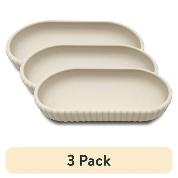 (3 pack) Mainstays Rubberized Plastic Ribbed Accessory Tray, Beige