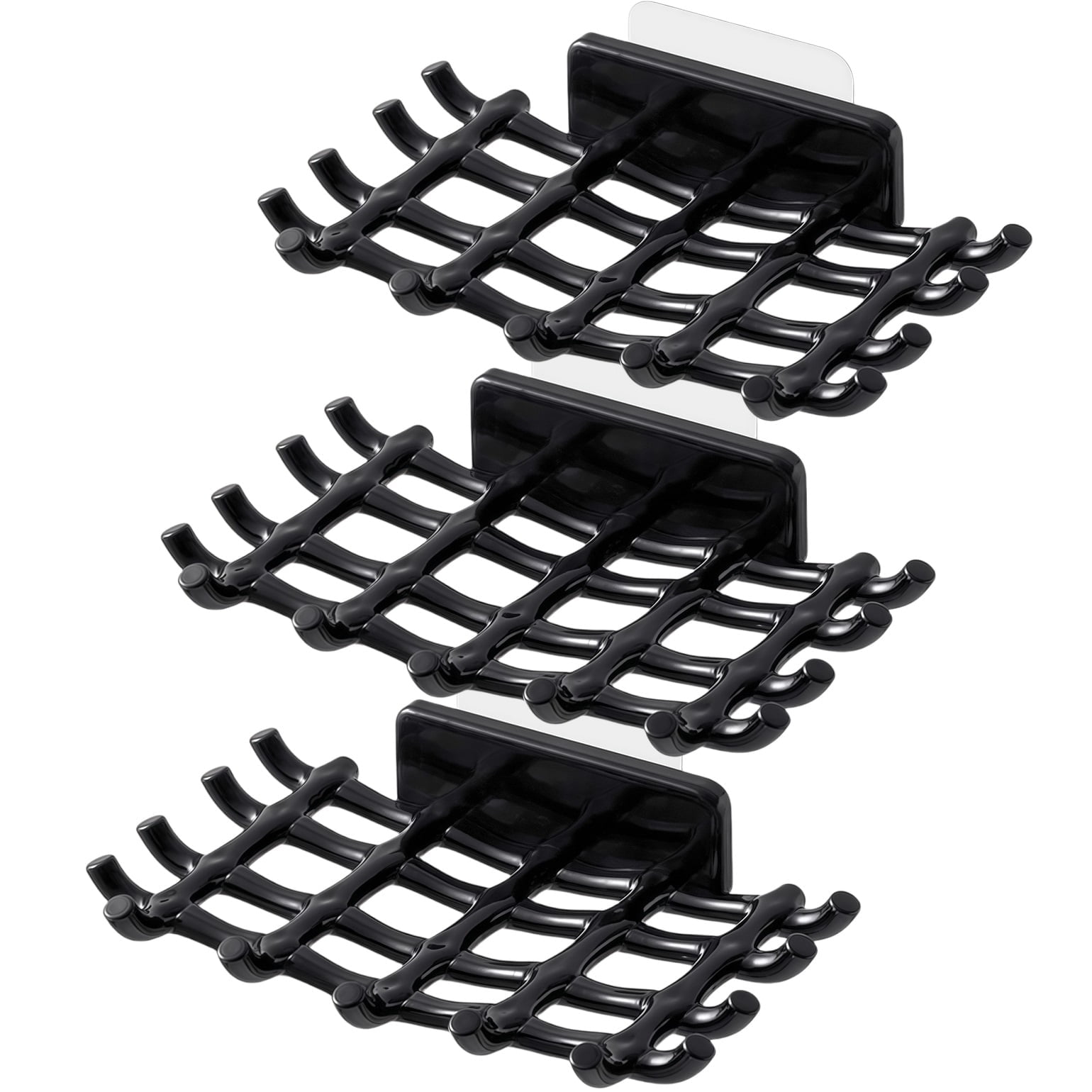 3Pack Draining Soap Dishes Wall Mounted Soap Holder for Shower Vonpri Bar Soap Sponge Organizer Self-Adhesive Rack Soap Tray Drainer with Hooks Black