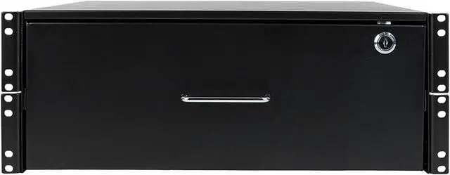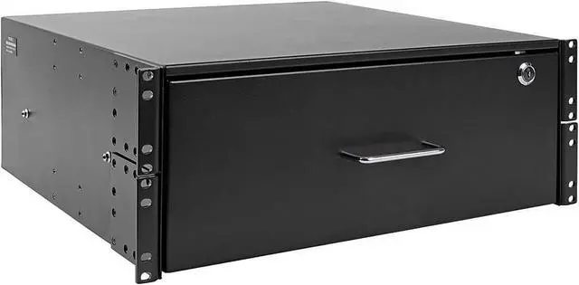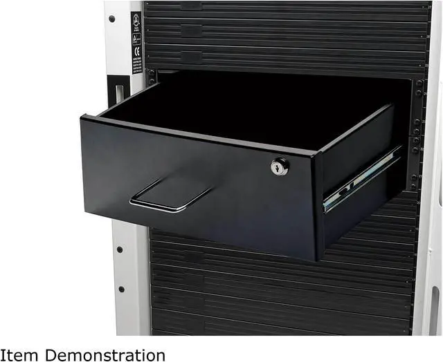 The SRDRAWER4U SmartRack 4U Locking Rack-Mount Storage Drawer is a convenient way to keep tools ,cables ,notes and essential accessories for your rack-mounted equipment at your fingertips. Constructed using cold-rolled steel with a durable black powder-coated finish ,this rack-mount drawer has a maximum load capacity of 50 pounds. Recommended for quick storage in your data center ,wiring closet ,back office or anywhere else you keep rack equipment ,the SRDRAWER4U mounts to your EIA-standard 19-inch 2-post rack using the included hardware. It locks securely with the included keys to help prevent damage ,tampering or theft. When not in use ,the 4U drawer slides smoothly into the rack ,out of the way until the next time you need a quick screwdriver or patch cable. |