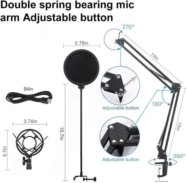 192kHz/24Bit Outstanding Sound Quality: The Adiven podcast microphone presents an astounding bit sample rate of up to 24bit/192kHz ,ensuring that your recordings emerge with a crystalline clarity that captivates the ears. Moreover ,its usb variant encompasses a wide frequency response spanning from 30 Hz to 16kHz ,thereby endowing high-resolution audio with an impeccable sound reproduction qualityClear Sound ,No Disturbance: The cardioid pickup pattern of this condenser microphone enables precise sonic capture ,zeroing in on front-facing sound sources and suppressing background noise ,enhancing live-streaming experiences. The podcast microphone kit includes a shock mount ,table clamp ,anti-wind foam cap ,and pop filter. USB Plug & Play Simplicity: Achieving high-caliber desktop recordings has been streamlined to effortless simplicity. Merely insert the usb microphone into your computer's port ,and watch as it instantaneously springs to life ,operating seamlessly with both Mac and PC systems without the encumbrance of requiring any additional drivers.Durable & Flexible: This microphone is built to last with metal construction. The scissor boom arm stand is not only allowing for precise positioning ,sturdy enough to hold the mic in place ,but also highly flexible in adjustment. The scissor arm is extensible in 135° back and forth ,180° up and down ,it also can be folded up. Broad Compatibility Spectrum: This recording microphone exhibits a remarkable level of compatibility ,interfacing flawlessly with most mainstream operating systems like Windows and Mac OS ,rendering it an ideal choice for a diverse range of applications such as streaming ,voice acting ,podcasting ,YouTube videos ,Skype conferences ,and numerous other audio pursuits. Note ,this studio microphone is not compatible with XBOX. |