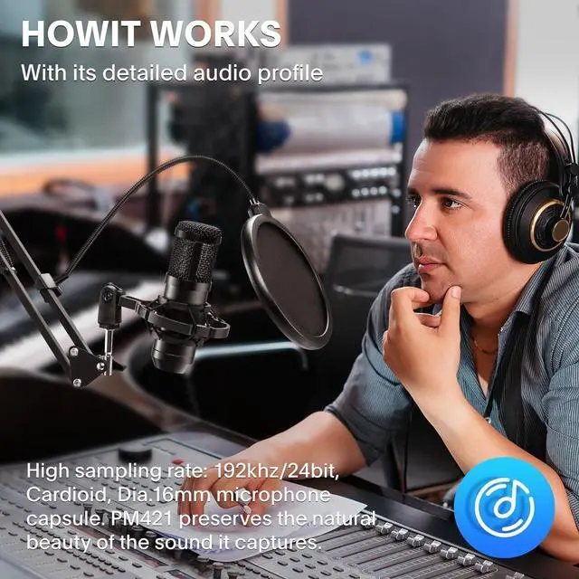 Adiven 2025 USB Streaming Podcast PC Microphone, 192KHz/24Bit Studio Cardioid Condenser Mic Kit with Sound Card, Boom Arm, Shock Mount, Pop Filter, – Pappy Mall