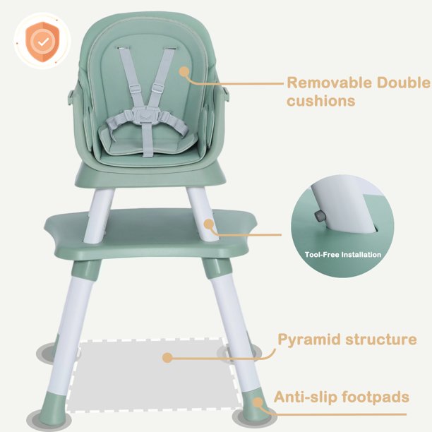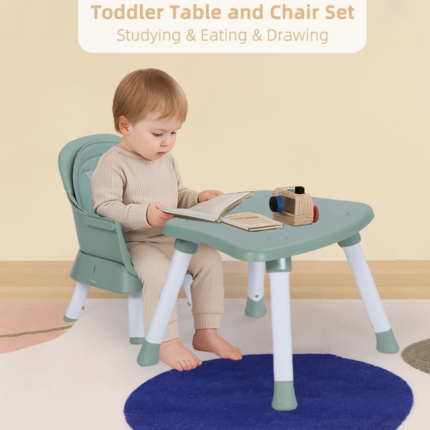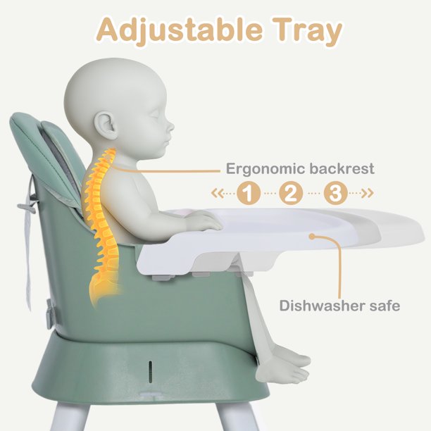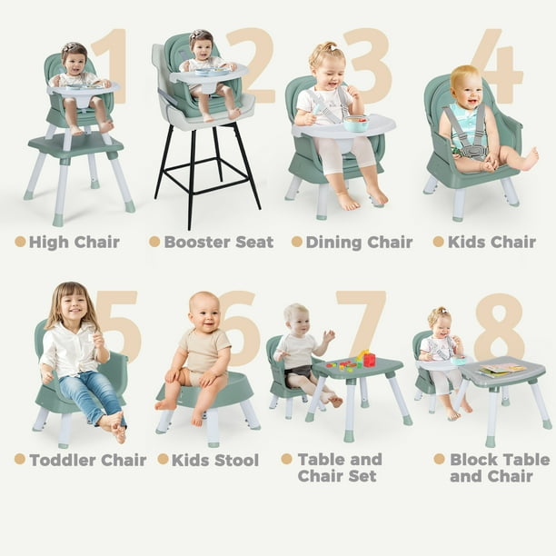AILEEKISS 8 in 1 Baby High Chair, Toddler Dining Booster Seat for Eating, Green