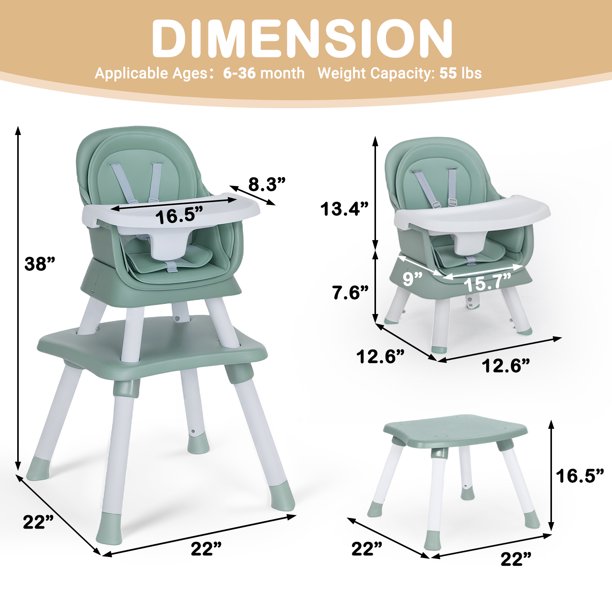 Be the first to review “AILEEKISS 8 in 1 Baby High Chair, Toddler Dining Booster Seat for Eating, Green”