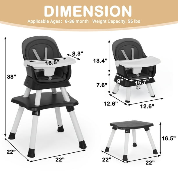 AILEEKISS 8 in 1 Baby High Chair, Toddler Dining Booster Seat for Eating, Grey