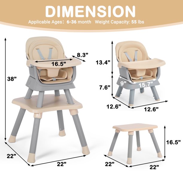 AILEEKISS 8 in 1 Baby High Chair, Toddler Dining Booster Seat for Eating, Khaki