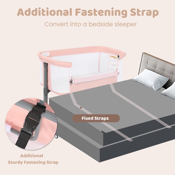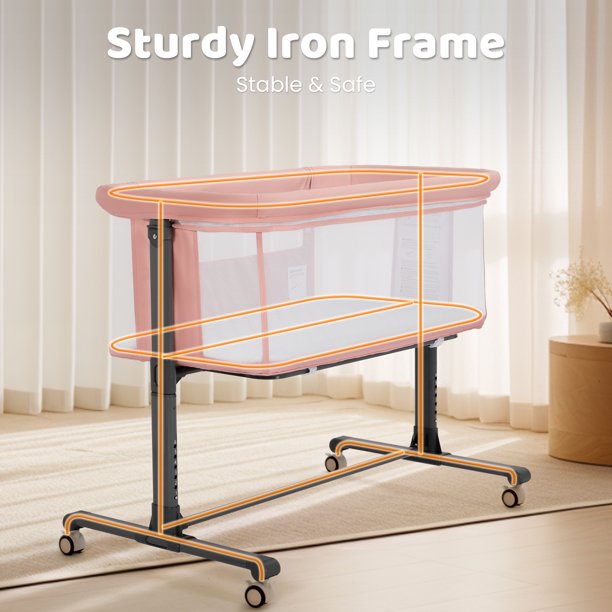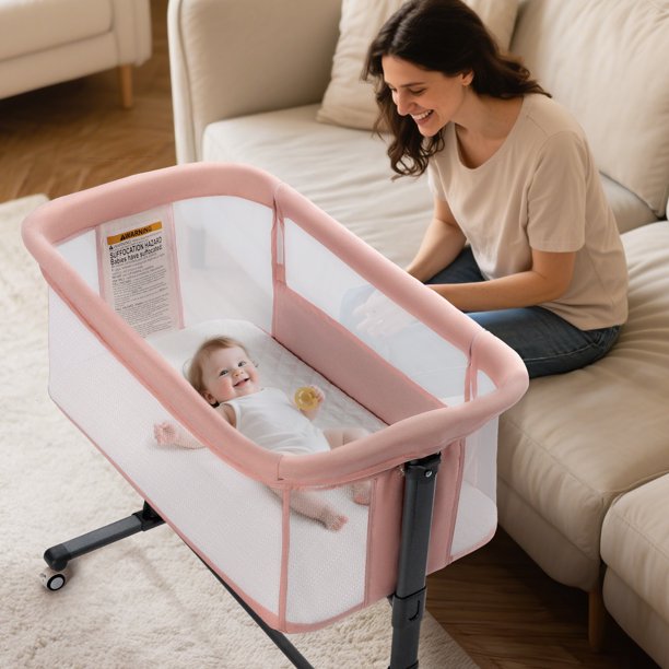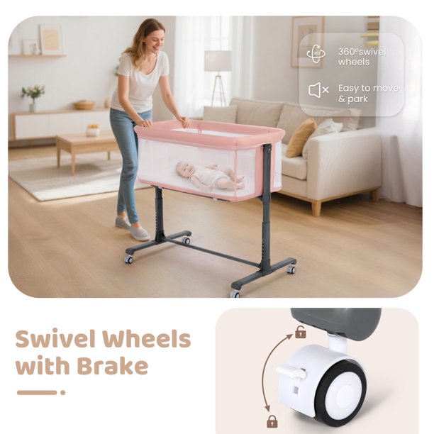 AILEEKISS Baby Bassinet with Wheels, Height Adjustable Newborn Bedside Sleeper for Baby, Pink