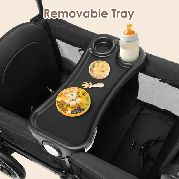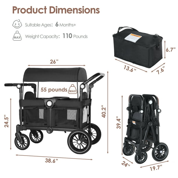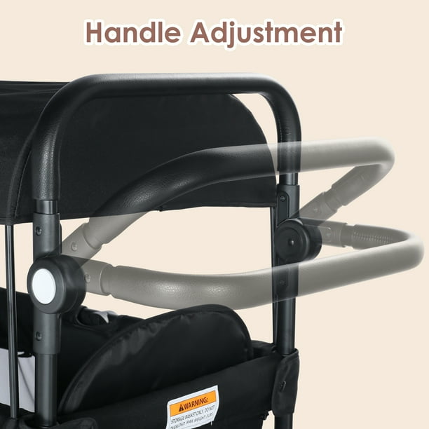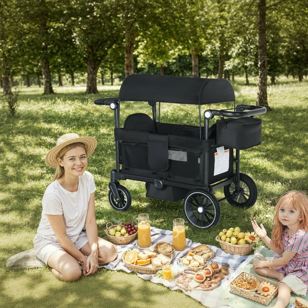 AILEEKISS Collapsible Wagon Stroller for 2 Toddlers with Adjustable Canopy, 44 Pounds, Black
