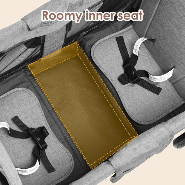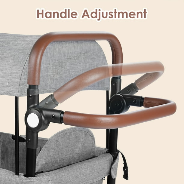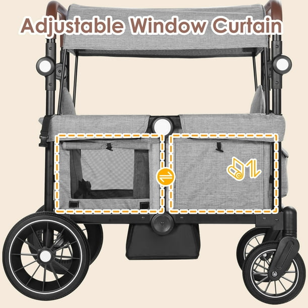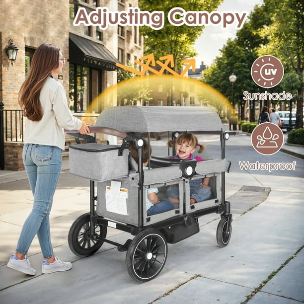 AILEEKISS Collapsible Wagon Stroller for 2 Toddlers with Adjustable Canopy, 44 Pounds, Grey