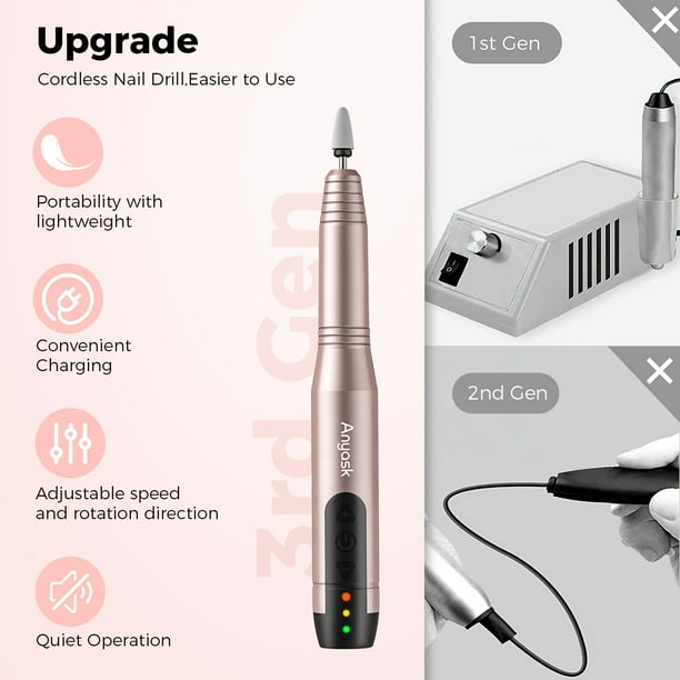 Anyask Portable Electric Nail Drill Manicure Pedicure Polishing Shape Tools for Nair Care Beauty Home Salon Use – Champagne
