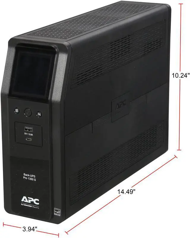 APC BR1350MS Back-UPS Pro, 1350VA/810W, Tower, 120V, 10x NEMA 5-15R outlets, Sine Wave, AVR, USB Type A + C ports, LCD, User Replaceable Battery – Pappy Mall