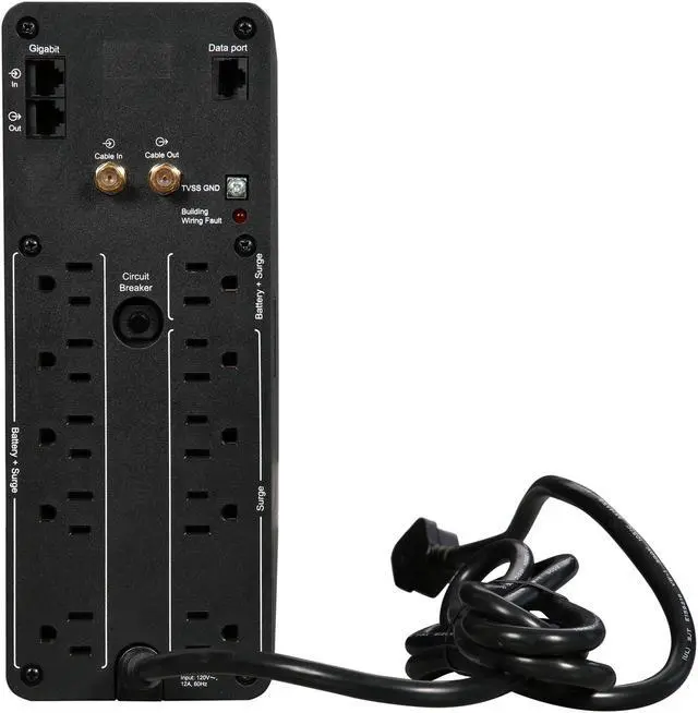 hibernates or is shut down. Power to peripherals is immediately restored when the master device wakes up or is switched on.LCD Status Display: Provides key UPS status at a glance. Multiple status indicators with load and battery bar graphs.Battery-protected and surge-only outlets: Reserves power capacity and run time for connected equipment that require UPS battery back-up while providing surge only protection for less critical equipment.