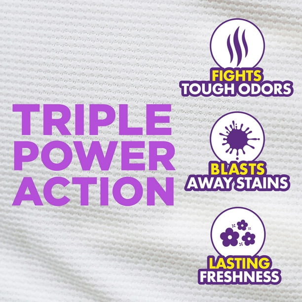 • Triple-power HE laundry detergent fights tough odors, blasts away stains and boosts freshness so your clothes look and smell their best