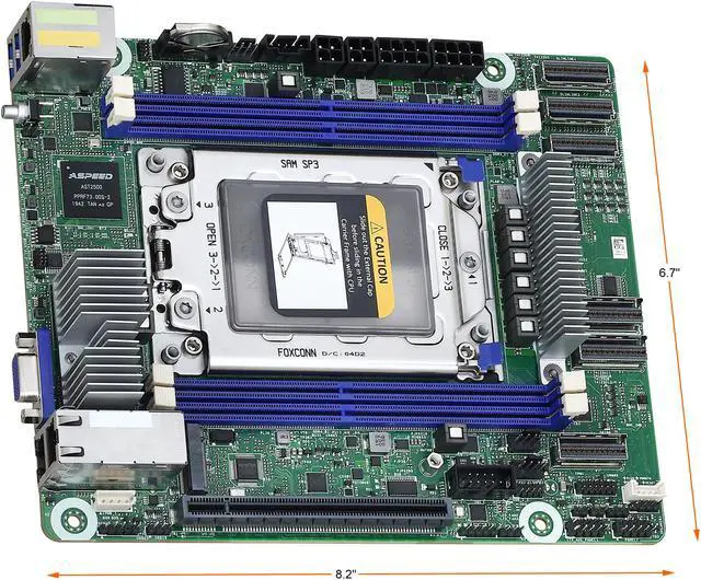 6.7" x 8.2"Single Socket SP3 AMD EPYC 7002 series Processors4 DIMMs1 PCIe4.0 x 162 Slimline (PCIe 4.0 x8 or 8 SATA 6Gb/s)