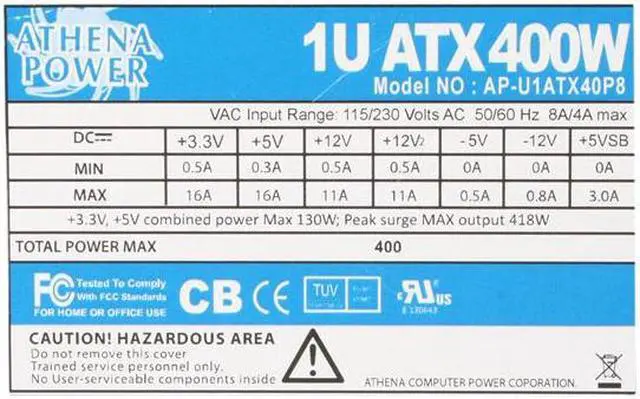 Athena Power AP-U1ATX40P8 1U EPS 80 PLUS Server Power Supply – Pappy Mall