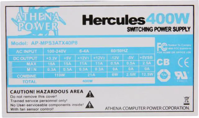 Athena Power Hercules Series AP-MPS3ATX40P8 PS2/PS3 4″(D) EPS-12V 400W PFC 82+ Bronze Certified – Pappy Mall