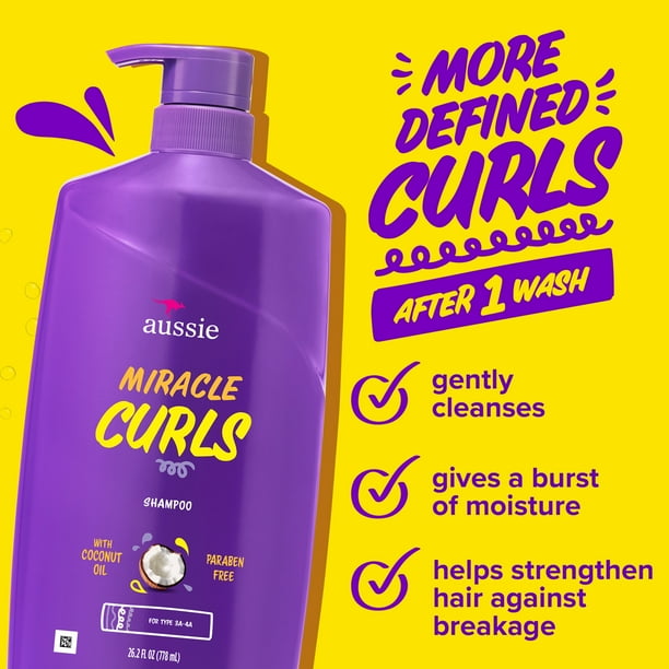 LET THOSE CURLS SHINE. Aussie Miracle Curls Shampoo helps keep your beautiful curls in shape with a nourishing formula designed to cleanse while maximizing moisture and softness. Simply work a palmful of this coconut and jojoba oil infused shampoo into wet hair for bouncy rings kissed with the scent of citrus, florals and musk DELIGHTFULLY TWISTED. Give your curls a little TLC with Aussie Miracle Curls Conditioner. Made with coconut and jojoba oil, this lightweight formula moisturizes, softens and nourishes for effortlessly gorgeous curls. After shampooing, smooth onto your hair and rinse for a perfectly bouncy mane kissed with the scent of citrus, florals and musk. Moisturizing. For Curly Hair
