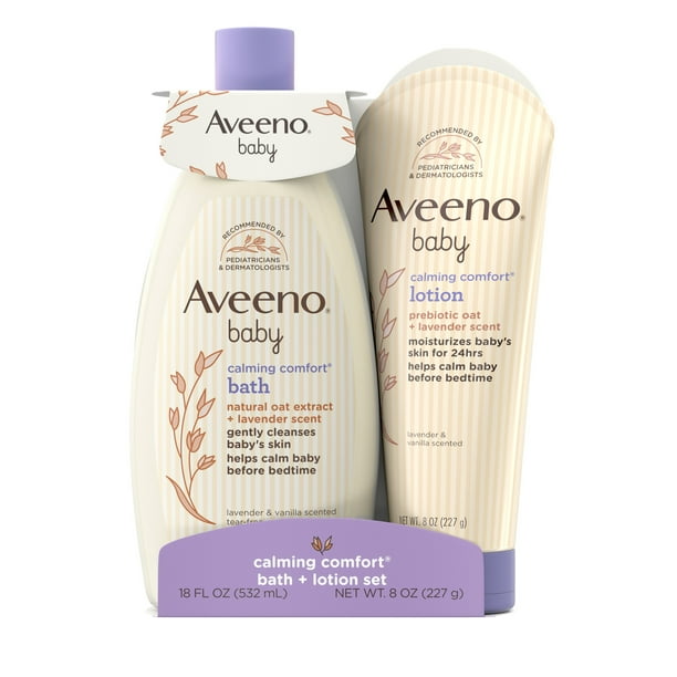 • 2-piece Aveeno Baby Nighttime Calming Comfort Unisex Infant Bath & Lotion Set for gentle & calming baby skin care