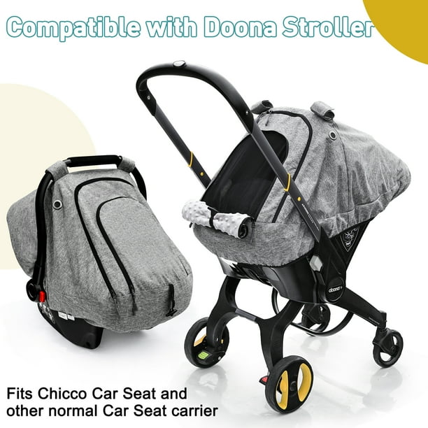 - The Car Seat Cover Features With Elastic Bands At The Bottom, It not only fits Chicco Car Seat and other normal Car Seat carrier but also perfect fit for doona Stroller, Protect Your Baby From The Elements And Chilly Weather.Peaceful Napping Anytime,Gives Infants a Darker, Cozier Environment To Nap In Allowing You To Travel Around To The Store, Restaurants, Shopping Mall, And Wherever Else You Go.