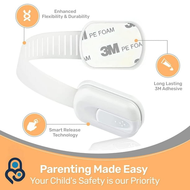 Baby Proof Me Safety Strap Locks – 6-Pack, 3M Adhesive, Child Safety Latches for Cabinets, Dishwashers, Fridges, Ovens, Trash Cans, Toilets – Stain-Free Design