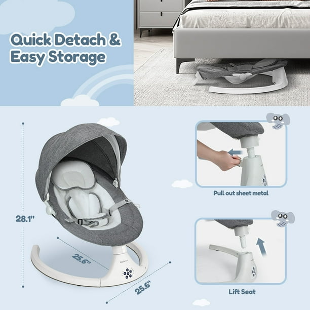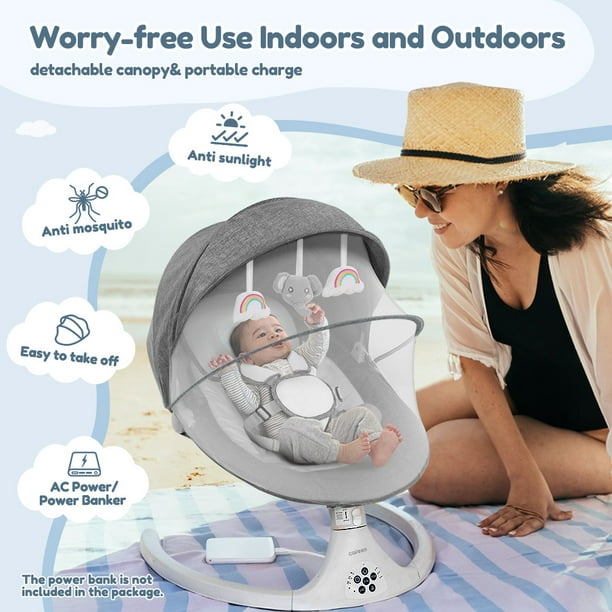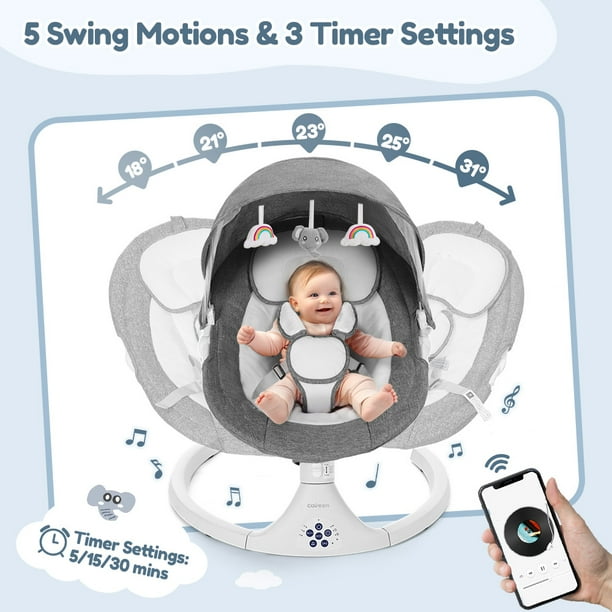 Baby Swing for Infants, Caveen Electric Bluetooth Baby Rocker, 5 Swing Speeds, 3 Seat Positions, Adapter & Battery Operated, Gray