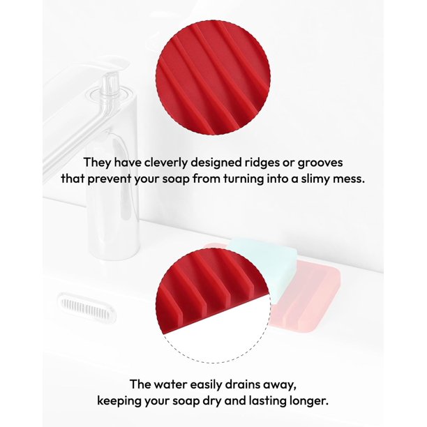 • No more soggy soap: Silicone self-draining soap dishes have cleverly designed ridges or grooves that prevent your soap from turning into a slimy mess. The water easily drains away, keeping your soap dry and lasting longer.