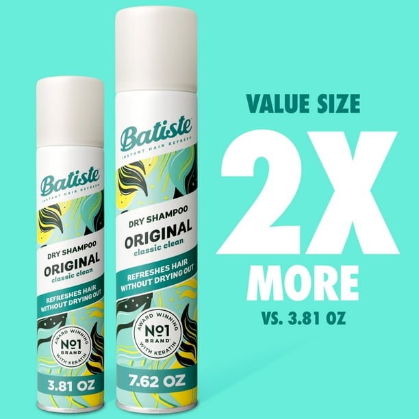 - 7.62 oz Batiste Original Classic Clean Dry Shampoo, from the world’s #1 dry shampoo