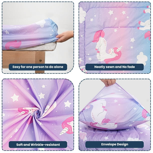 - Fun & Stylish Patterns: This toddler girl bedding set is available in a variety of playful themes that complement your child’s personality and room decor, sure to be loved by your little one.