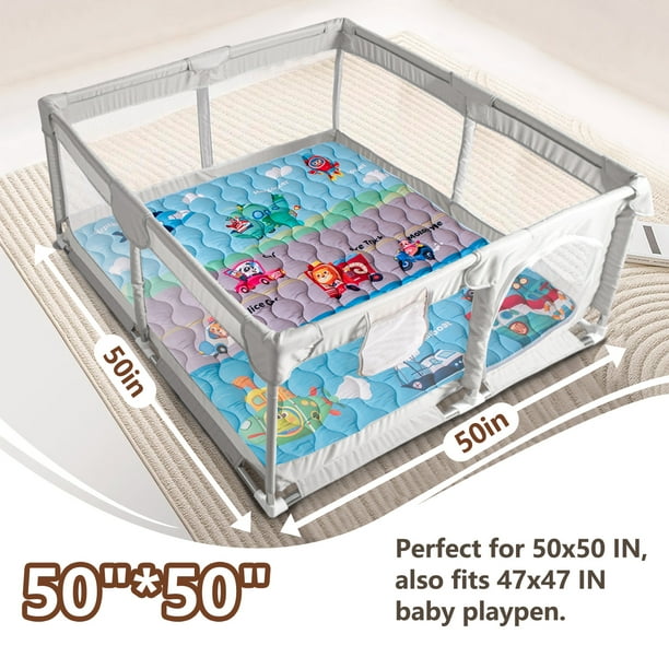 • 🧳 [Foldable and Portable] This one-piece tummy time mat fits standard 50×50 inch playpens, folds easily, and is lightweight—perfect for home use, travel, or playtime on the go.