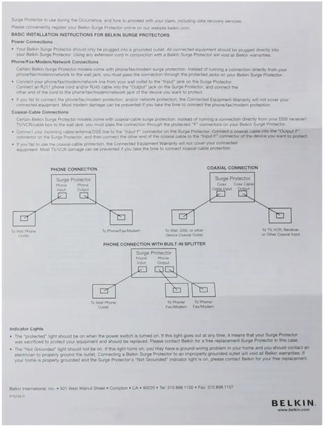 3996 Joules energy rating provides maximum protection of all your sensitive electronic devices12 Surge-protected outlets supply complete ,3-line AC protection10' Extended cord delivers optimal ,safe AC power through a 14-gauge heavy-duty cordFilters EMI/RFI noise up to 75 dB reduction1-in ,2-out RJ11 Telephone/Fax Surge ProtectionEthernet protectionCoaxial protectionRight angle plugSimple detachable cord management system to help reduce cable clutterCovers each outlet with sliding safety coversSaves space with slim design |