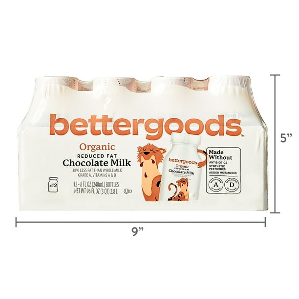 - bettergoods Organic Reduced Fat Chocolate Milk, 8 fl oz, 12 Count