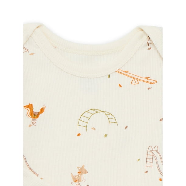 • Bodysuit Features: Crewneck; bottom snaps; long sleeves; ribbed knit; allover print