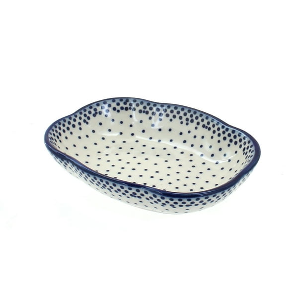 Pair our hand painted soap dish with your other pottery from our ceramic bathroom accessories line. Keep by the bathroom or kitchen sink! 5 inches long, 3.75 inches wide. The Art of Polish Pottery, as we know it today, started as local folk-art centuries ago in the German province of Silesia. The first known pieces of “Bunzlauer” stoneware dating back to the 16th century were crafted by hand and decorated with a folk-art stamping technique using potatoes. Original designs were inspired by the peacock feather using the colors of cobalt blue, sage green and ferrous red. These designs and colors are still the inspiration for modern day patterns. Today, skilled Polish artists still individually handcraft, and hand decorate each piece using small sponges to stamp each pattern and color. After the process of mixing ingredients, molding the pottery, applying the decorations and glaze, the pottery is twice fired. This process makes the pottery extremely durable; it will not crack or chip easily, and it is perfect for use in the microwave, dishwasher, oven, and freezer. Along with our pottery, we have sourced a range of absolutely beautiful hand-blown glassware from Poland. Blue Rose Pottery is the best place to start or add to your Polish Pottery collection!