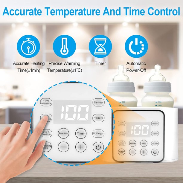 Bottle warmer for breastmilk with LED screen and touch button, show the preset temperature for you in constant temperature, preset the feeding time on the late nights and early mornings. Accurate heating time can be precisely adjusted to 1 minute. Accurate temperature can be precisely adjusted to 1°C.