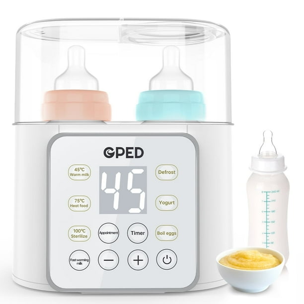 - ã9-in-1 Double Bottle Warmerã Fast Warming (Steam) / Milk Warming (Water bath) / Keep Warm / Food Heating / Thaw / Steam / Timer / Adjustable Temp. This do-it-all twin bottle warmer deserves to be owned by growing families, especially twin families. Assist moms in saving counter space and outlet usage.