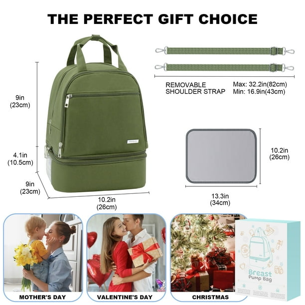 - Design: DERSTUEWE breast pump backpack Green is a practical and stylish solution for storing and organizing breast pump equipment and related items. Its backpack design ensures comfort and ease of use for busy moms.