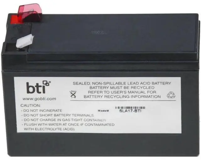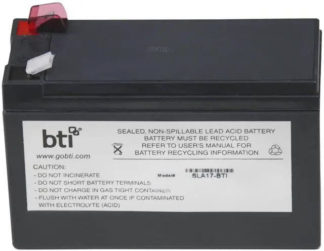 Color: BlackLead Acid Battery Features: Spill proofModel: #17 for APCProduct Line: BTI Replacement BatteryProduct Type: UPS batterySubcategory: Batteries (UPS battery replacements)Technology: Lead acidVoltage Provided: 12 V
