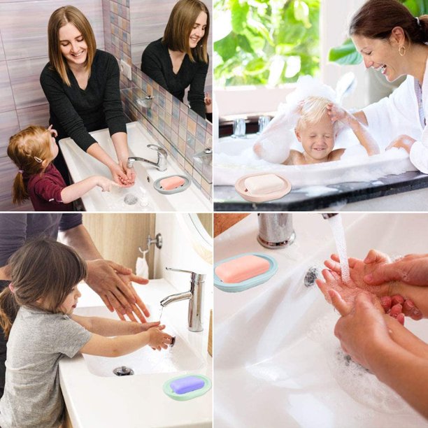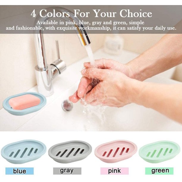 4,The set contains 4 soap boxes,one each for gray,blue,green and pink.