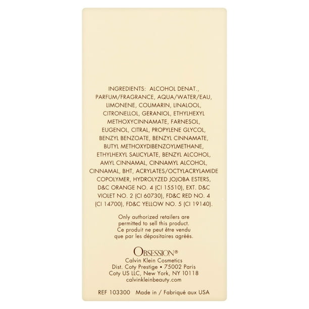 Express yourself with Calvin Klein Obsession Eau de Parfum. It’s a formal, distinctive scent from the iconic Calvin Klein, a leader in style and fashion. First introduced by the brand in 1985, Calvin Klein women’s Obsession perfume is a spicy, moderate fragrance that balances its citrus notes with musky undertones. The generous sillage is long-lasting and an ideal choice for evening wear. It comes in a beautiful, decorative vaporizer that offers easy allover application and a lovely display on the shelf or vanity countertop. This Obsession perfume, 3.4 oz, is just the right size for home or taking it along wherever the night leads you.