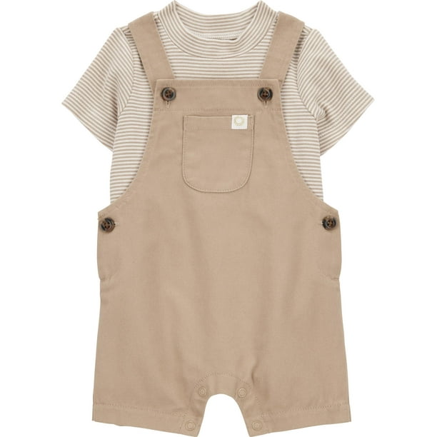 Dressed in a snap! This 2-piece overall set for baby boy from Carter’s Child of Mine is the perfect wardrobe must-have for little ones. This two-piece outfit includes one t-shirt and one pair of overall shorts to make getting baby dressed hassle-free! Plus, the overalls for baby boy feature snaps at the legs to make diaper changes easy, peasy! These shorts-style overalls and short sleeve t-shirt are perfectly comfy for warm weather days to keep baby cool and calm when you’re out and about! Each piece in this set is Standard 100 by OEKO-TEX so it’s certified clean for your little one.