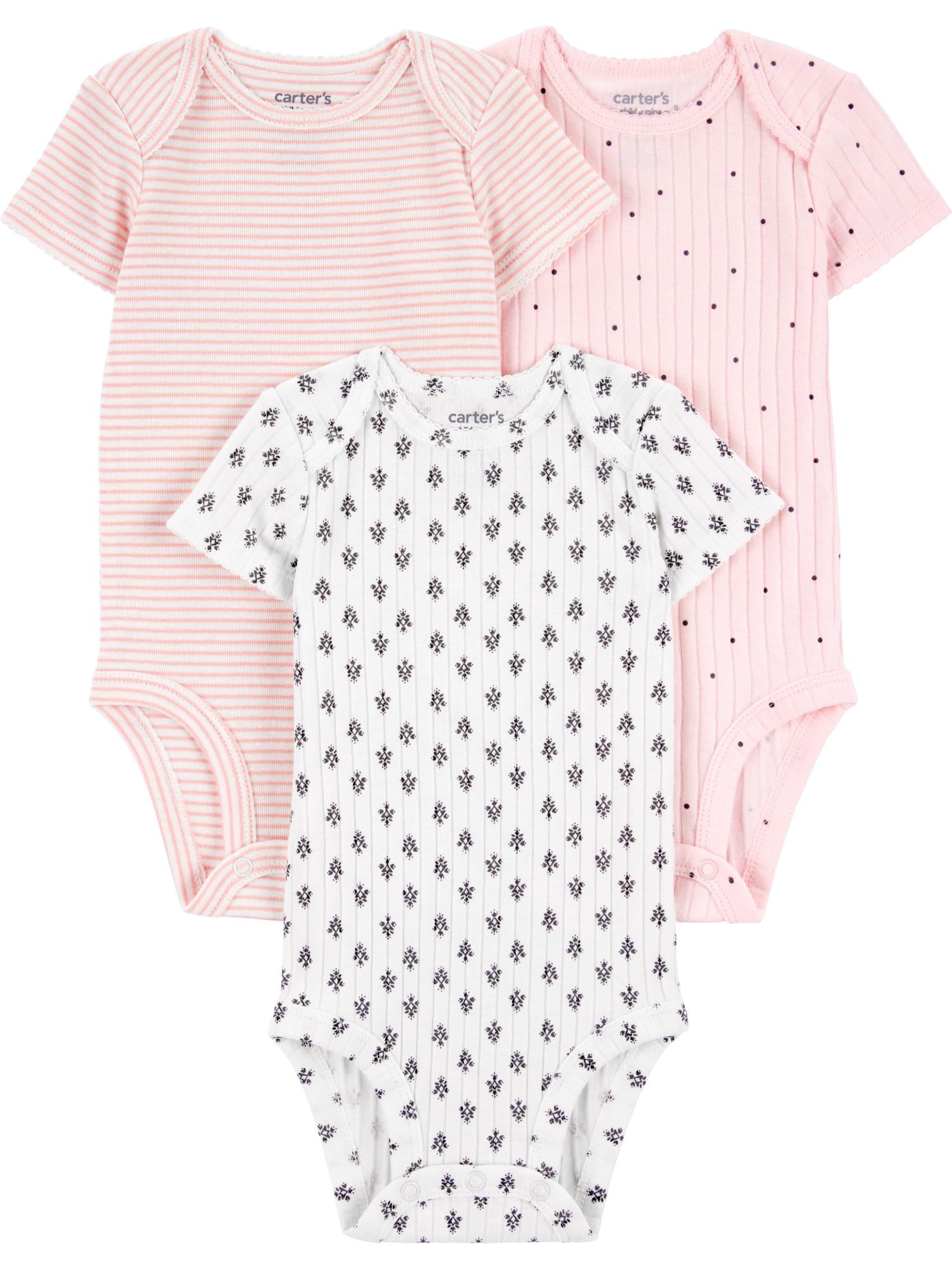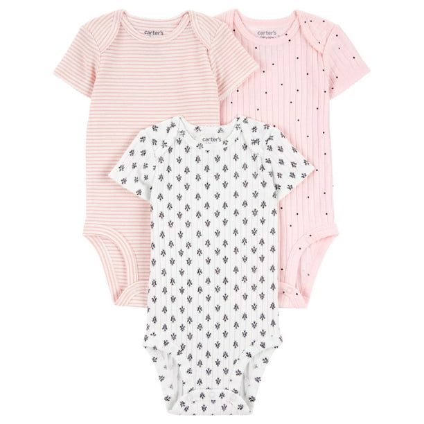 New baby? Then you don’t want to pass up this 3-pack bodysuit set from Carter’s Child of Mine. These short-sleeve bodysuits for baby girl are the perfect everyday top for long days at home or early days on the go with your little one. Crafted with overlap shoulders and strong snaps at the legs, this multi-pack bodysuit set for baby girl is a parent’s dream for easy dressing and easy changes! Messes are inevitable with baby, so having stylish back up bodysuits that easily mix and match is a necessity! Pssst…this 3-pack bodysuit set is the perfect baby shower gift! Carter’s Child of Mine 3-pack bodysuit set is made with the same trusted quality as Carter’s and Standard 100 by OEKO-TEX, so it’s certified clean.