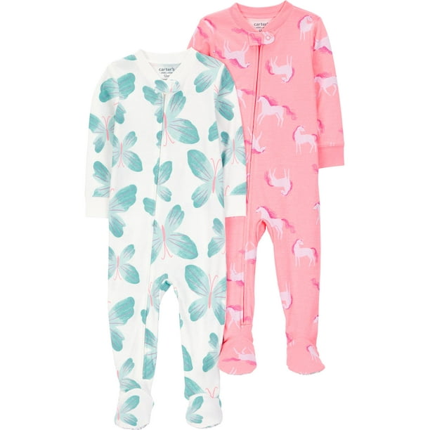 Long days of fall adventure turn to cozy nights zipped snug in Carter’s Child of Mine 1-piece pajamas! This 2-pack footed pajama set for little ones is an easy choice for making bedtime simple with an easy, peasy full-length zipper. With these snug-fit, ribbed footed pajamas from Carter’s Child of Mine, you’ll love the ease of dressing your little one for bed. Made from soft fabric, your little one can take a comfy snooze for the night or a quick nap midday! When they’re ready to get up and run, the foot grippers make sure they are safe to play. Take your pick of two fun prints and turn long days at home into picture perfect moments! Each piece in this 2-pack pajamas set is made with the same trusted quality as Carter’s and Standard 100 by OEKO-TEX, so it’s certified clean for your little one.