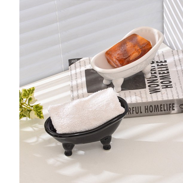 Ceramic Clawfoot Bathtub Bar Soap Dish for Bathroom Shower Decorative Soap Dish Sponge Holder Shower Bar Soap Tray Container for for bathroom, Kitchen Sink, Soap Dish with Drainer for Home Kitchen Bathroom Accessories
