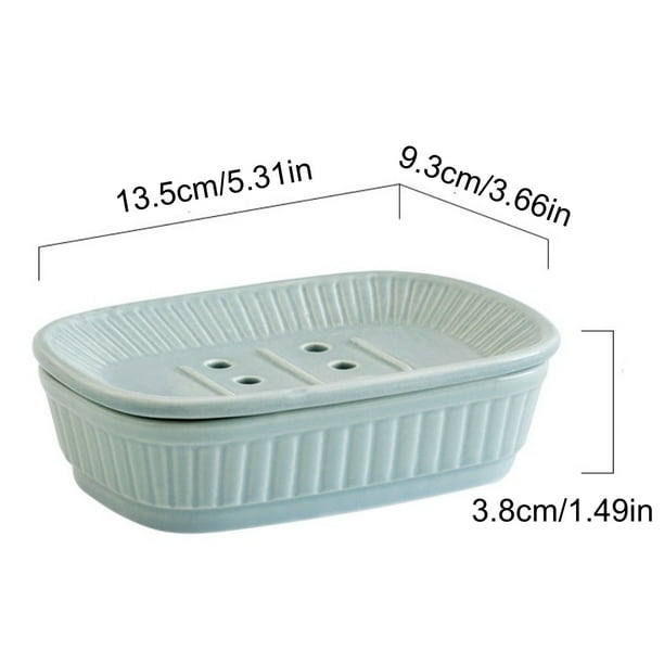 - 【Size】This ceramic soap dish measures about 13.5 x 9.3 x 3.8 cm / 5.31 x 3.66 x 1.49 inch (L*W*H). It fits most soap with variant size. It also makes a great Kitchen Sponge and Soap Holder.