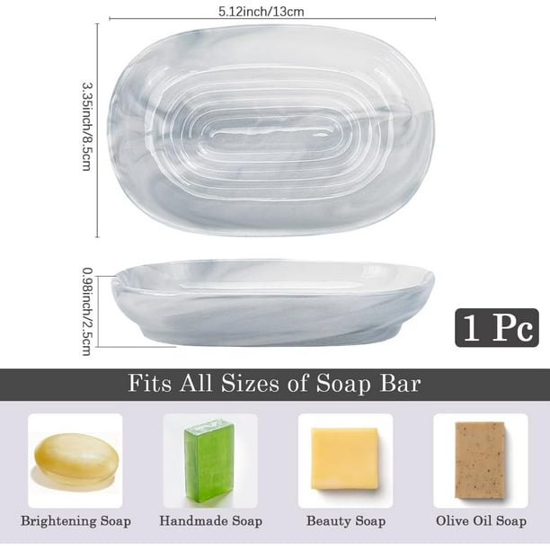 - Marble Textures Soap Dish: Each bar soap holder features a unique, handcrafted marble pattern, making it a stylish addition to your bathroom or kitchen. These soap dishes for bar soap are perfect for enhancing your daily routine with a touch of elegance and sophistication. They are the ideal soap dish for bathroom sink areas, offering a practical and elegant solution