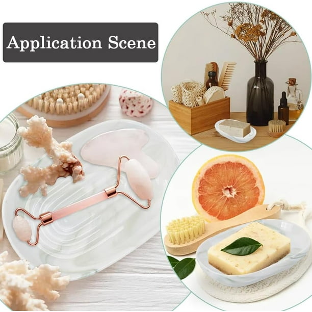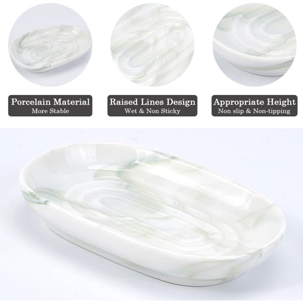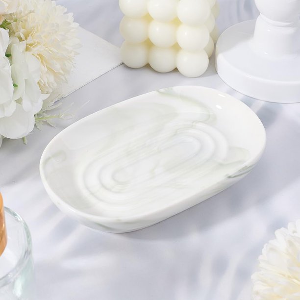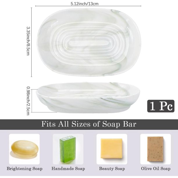 - Marble Textures Soap Dish: Each bar soap holder features a unique, handcrafted marble pattern, making it a stylish addition to your bathroom or kitchen. These soap dishes for bar soap are perfect for enhancing your daily routine with a touch of elegance and sophistication. They are the ideal soap dish for bathroom sink areas, offering a practical and elegant solution